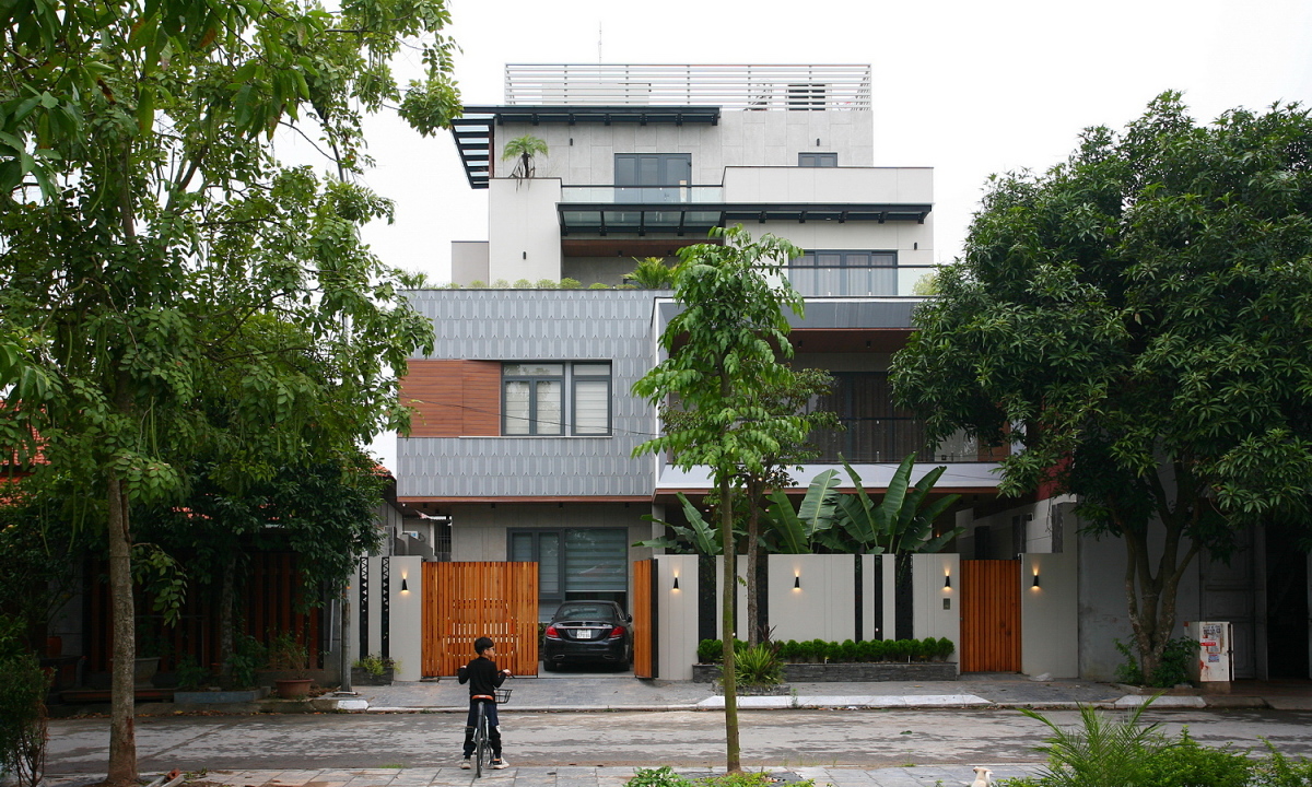 Căn biệt thự 4 tầng, được xây trên khu đất rộng 320 m2 tọa lạc tại Từ Sơn (Bắc Ninh). Địa điểm xây dựng là một khu phố mới và có tầm nhìn ra công viên phía trước.