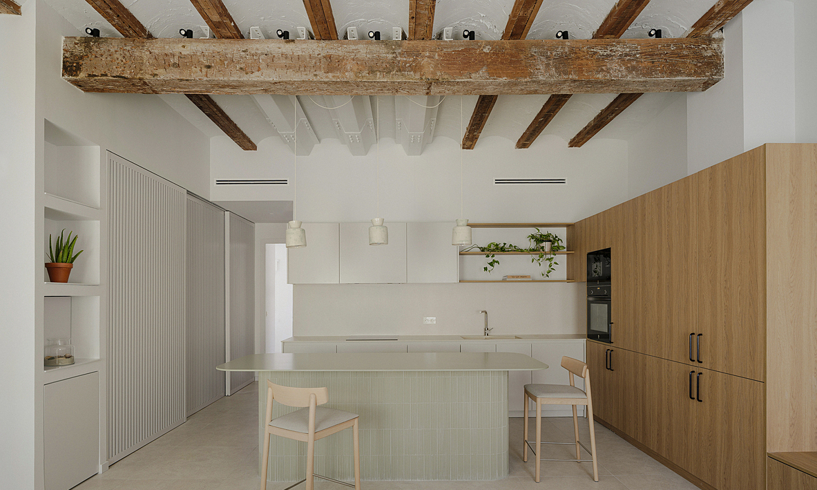 Căn hộ có diện tích 70 m2, tọa lạc trong một tòa nhà được xây từ năm 1925 tại Valencia (Tây Ban Nha). Gia chủ là một người trẻ yêu biển và lướt sóng, mong muốn sở hữu không gian sống mang đậm cảm hứng Địa Trung Hải nhưng vẫn đảm bảo được công năng hiện đại, tiện dụng.
