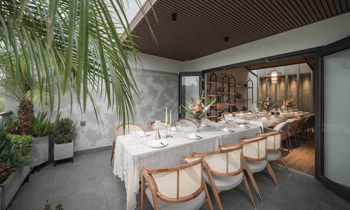 Gia chủ thuộc lớp trung niên yêu thích sự tĩnh lặng và tinh thần thiền định, đã lựa chọn cảm hứng tối giản – wabi sabi làm ngôn ngữ thiết kế chính cho ngôi nhà. Diện tích một mặt sàn khoảng 80 m2. Tầng một là không gian vui chơi và khu vực để xe, trong khi các khu vực chức năng phục vụ sinh hoạt được chuyển lên các tầng cao để tạo cảm giác riêng tư.
