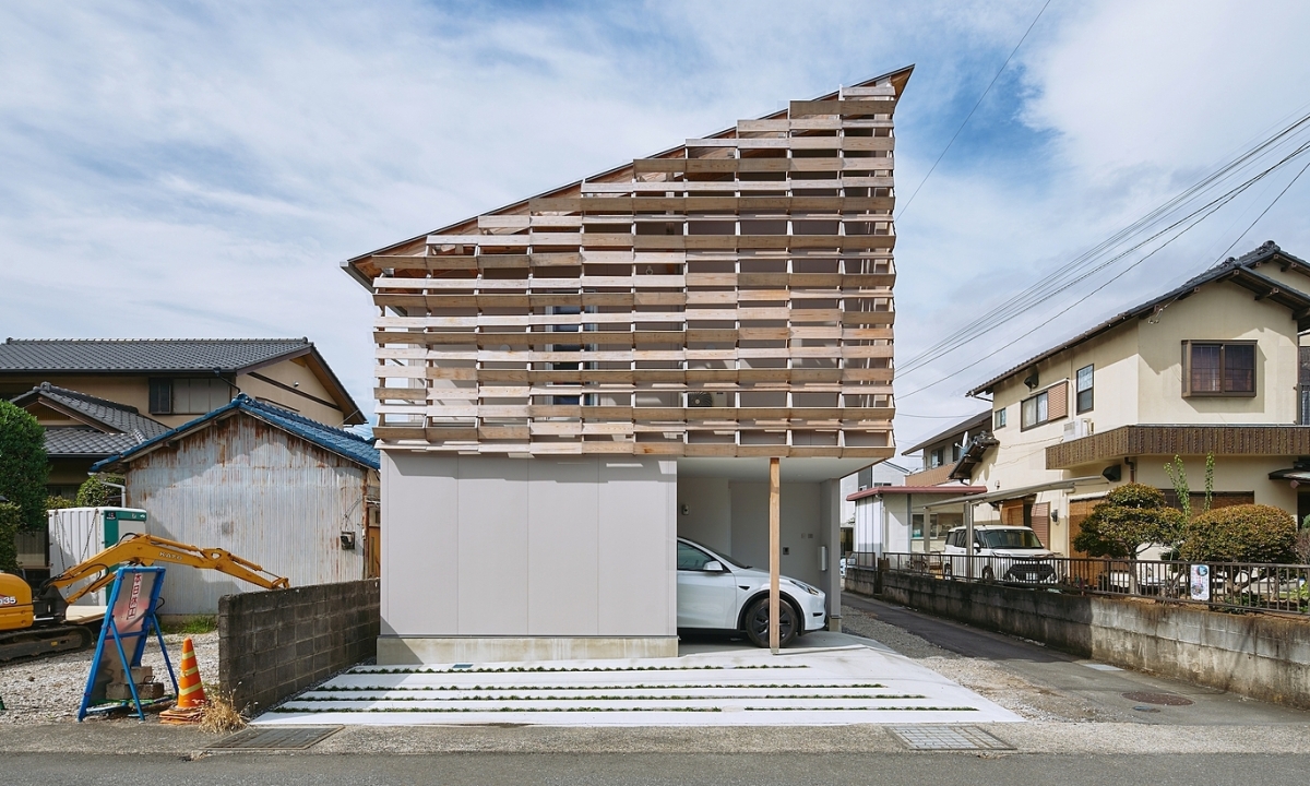 Nhà phố che rèm gỗ kín mặt tiền để cản tiếng ồn