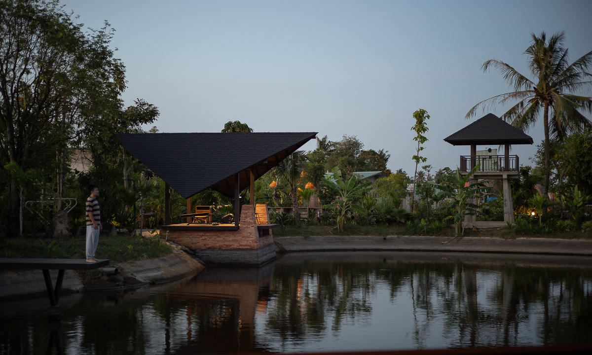 Ngôi nhà vườn có quy mô một tầng, diện tích xây dựng 500 m2, tọa lạc tại Bến Tre, được thiết kế theo phong cách mộc mạc, giản dị nhưng đủ tiện nghi, mang đậm hơi thở miền Tây.